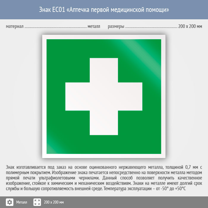 Знак EC01 «Аптечка первой медицинской помощи» (металл, 200х200 мм) в Бердске купить