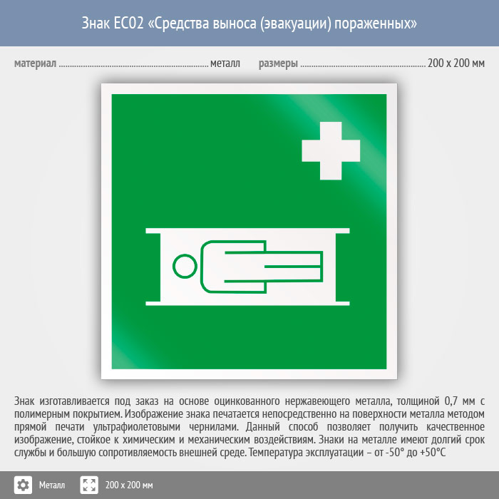 Знак EC02 «Средства выноса (эвакуации) пораженных» (металл, 200х200 мм) в Бердске купить