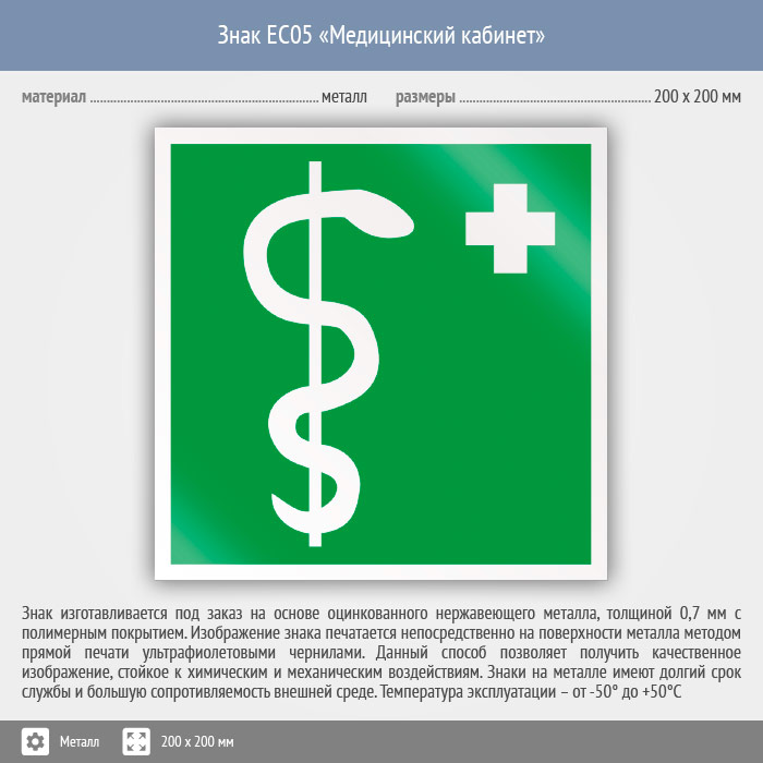 Знак EC05 «Медицинский кабинет» (металл, 200х200 мм) в Бердске купить