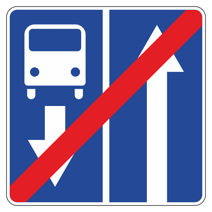 Дорожный знак 5.12.1 «Конец дороги с полосой для маршрутных транспортных средств» (металл 0,8 мм, III типоразмер: сторона 900 мм, С/О пленка: тип А инженерная) в Бердске купить