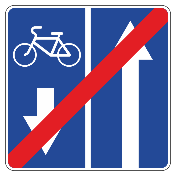 Дорожный знак 5.12.2 «Конец дороги с полосой для велосипедистов» (металл 0,8 мм, III типоразмер: сторона 900 мм, С/О пленка: тип В алмазная) в Бердске купить