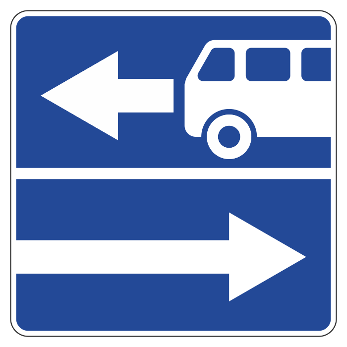 Дорожный знак 5.13.1 «Выезд на дорогу с полосой для маршрутных транспортных средств» (металл 0,8 мм, II типоразмер: сторона 700 мм, С/О пленка: тип В алмазная) в Бердске купить