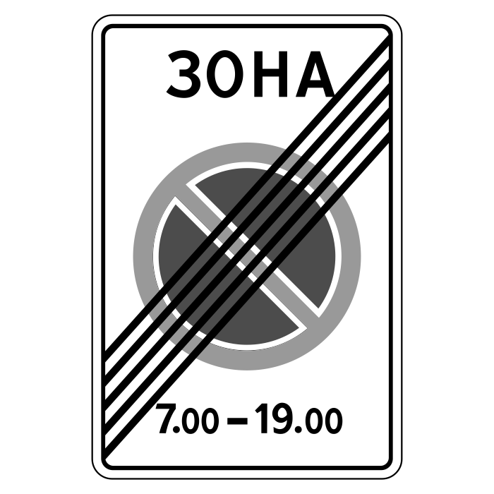 Дорожный знак 5.28 «Конец зоны с ограничениями стоянки» (металл 0,8 мм, I типоразмер: 900х600 мм, С/О пленка: тип А инженерная) в Бердске купить