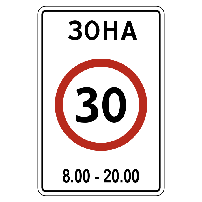 Дорожный знак 5.31 «Зона с ограничением максимальной скорости» (металл 0,8 мм, I типоразмер: 900х600 мм, С/О пленка: тип А инженерная) в Бердске купить