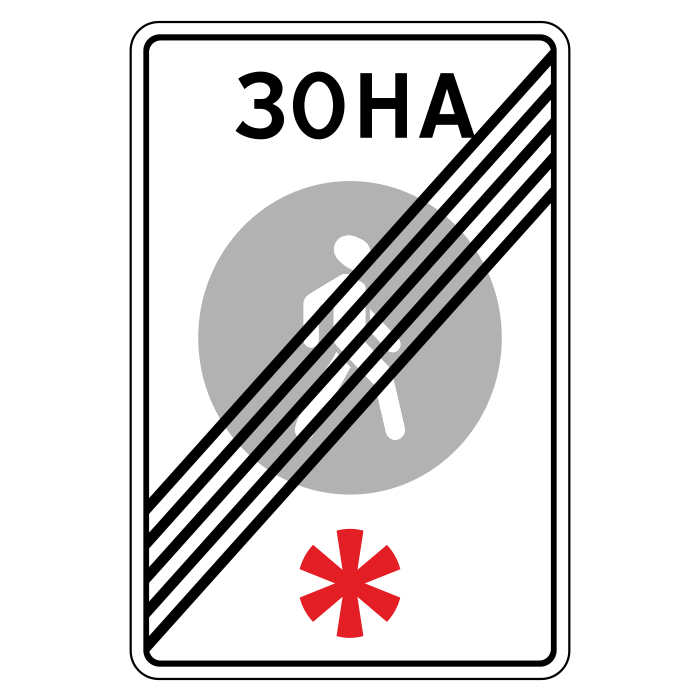 Дорожный знак 5.34 «Конец пешеходной зоны» (металл 0,8 мм, I типоразмер: 900х600 мм, С/О пленка: тип Б высокоинтенсивная) в Бердске купить