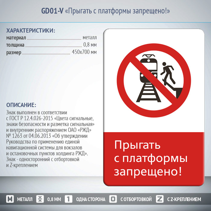 Знак «Прыгать с платформы запрещено!», GD01-V (односторонний вертикальный, 450х700 мм, металл, с отбортовкой и Z-креплением) в Бердске купить