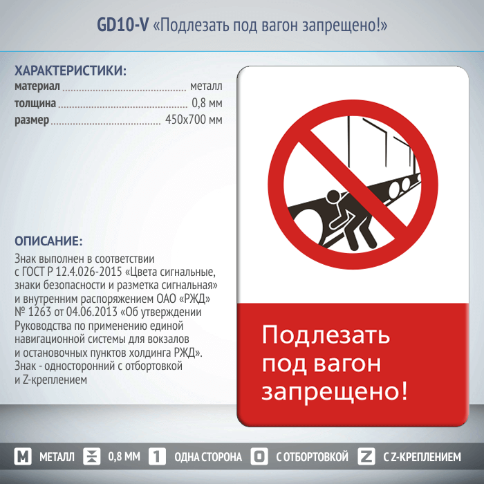 Знак «Подлезать под вагон запрещено!», GD10-V (односторонний вертикальный, 450х700 мм, металл, с отбортовкой и Z-креплением) в Бердске купить
