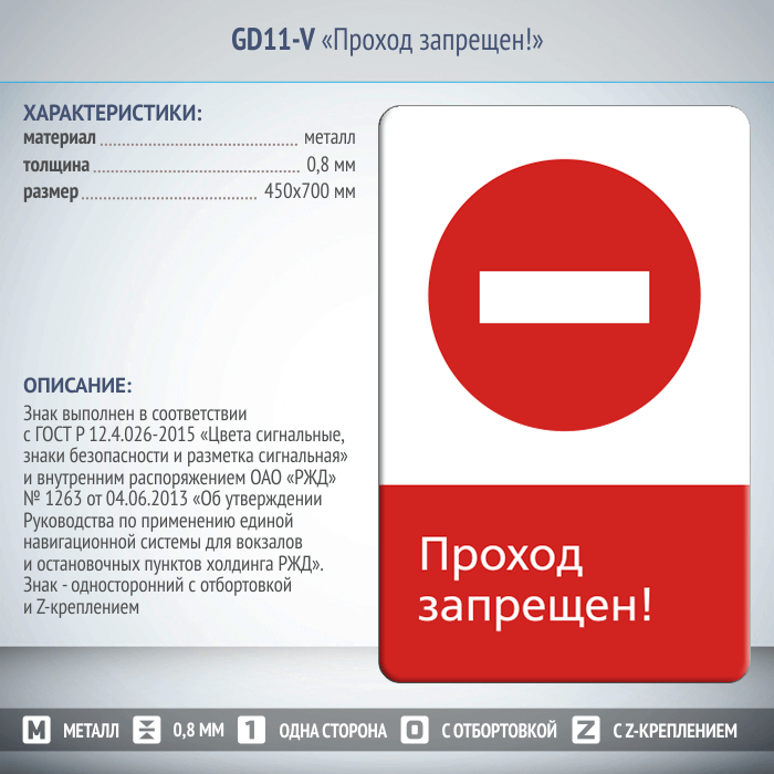 Знак «Проход запрещен!», GD11-V (односторонний вертикальный, 450х700 мм, металл, с отбортовкой и Z-креплением) в Бердске купить