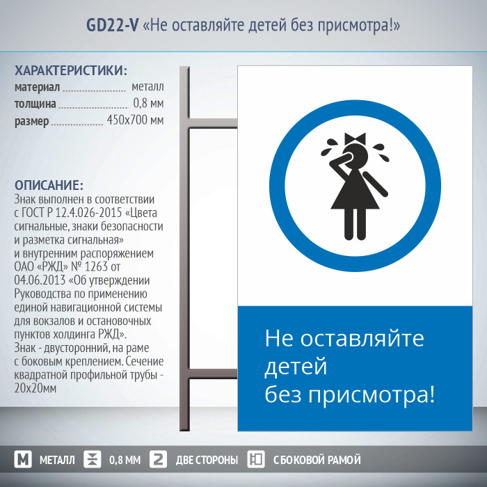 Знак «Не оставляйте детей без присмотра!», GD22-V (двусторонний вертикальный, 450х700 мм, металл, на раме с боковым креплением) в Бердске купить