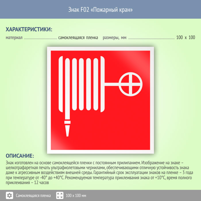 Знак F02 «Пожарный кран» (пленка, 100х100 мм) в Бердске купить
