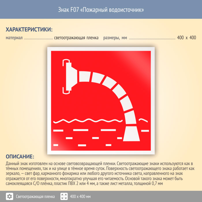 Знак F07 «Пожарный водоисточник» (светоотражающая пленка, 400х400 мм) в Бердске купить