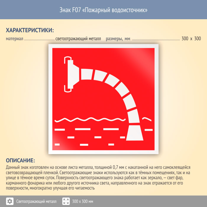 Знак F07 «Пожарный водоисточник» (светоотражающий металл, 300х300 мм) в Бердске купить