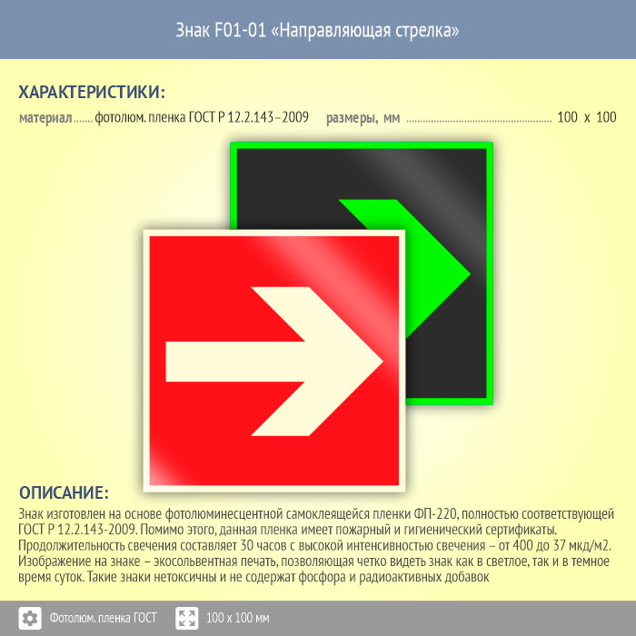 Знак F01-01 «Направляющая стрелка» (фотолюминесцентная пленка ГОСТ 34428-2018, 100х100 мм) в Бердске купить
