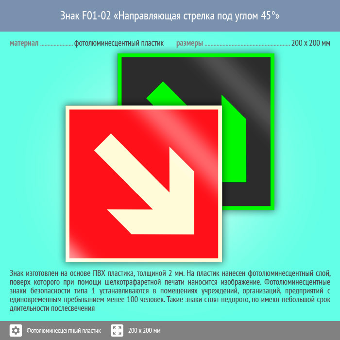 Знак F01-02 «Направляющая стрелка под углом 45°» (фотолюминесцентный пластик, 200х200 мм) в Бердске купить