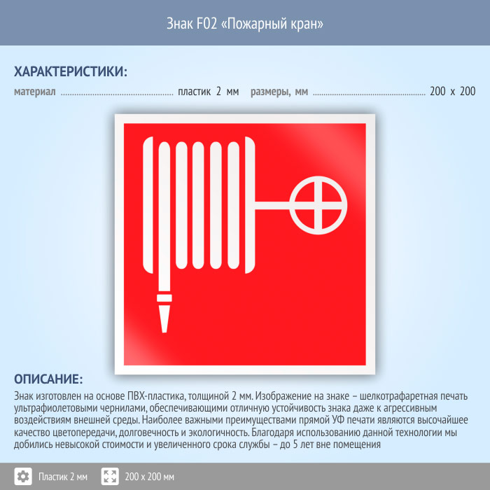 Знак F02 «Пожарный кран» (пластик, 200х200 мм) в Бердске купить