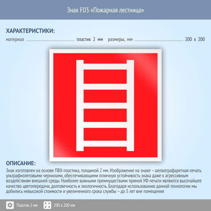 Знак F03 «Пожарная лестница» (пластик, 200х200 мм) в Бердске купить