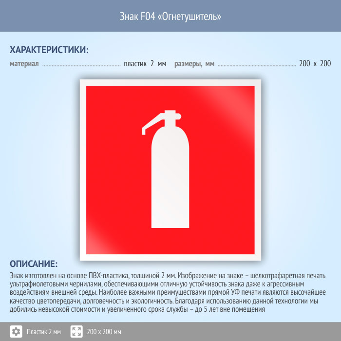 Знак F04 «Огнетушитель» (пластик, 200х200 мм) в Бердске купить