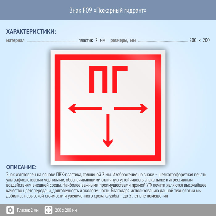 Знак F09 «Пожарный гидрант» (пластик, 200х200 мм) в Бердске купить