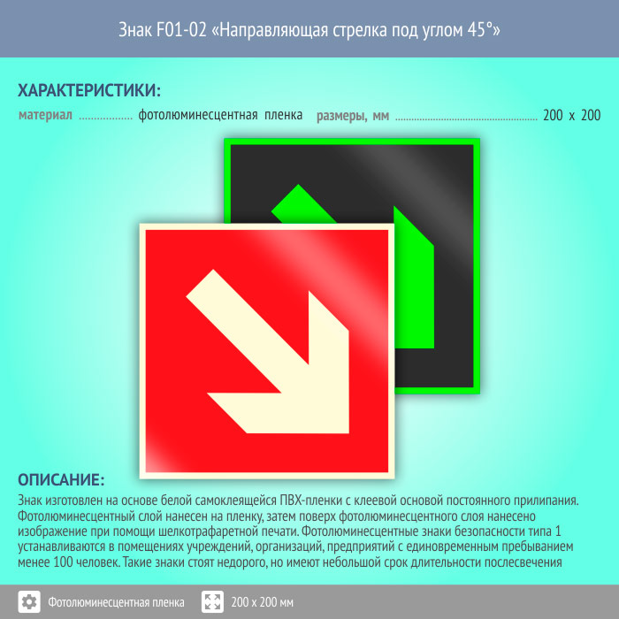 Знак F01-02 «Направляющая стрелка под углом 45°» (фотолюминесцентная пленка, 200х200 мм) в Бердске купить