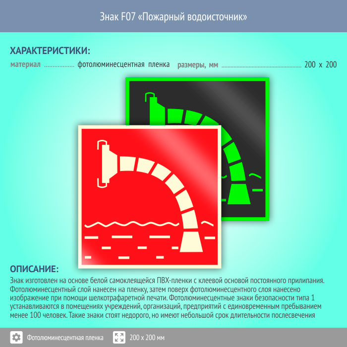 Знак F07 «Пожарный водоисточник» (фотолюминесцентная пленка, 200х200 мм) в Бердске купить