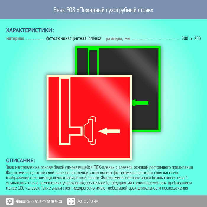 Знак F08 «Пожарный сухотрубный стояк» (фотолюминесцентная пленка, 200х200 мм) в Бердске купить