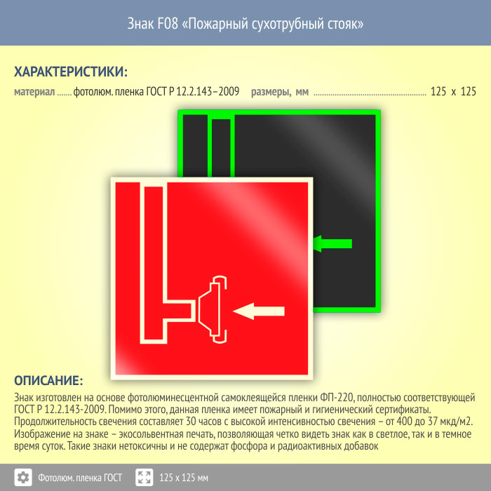 Знак F08 «Пожарный сухотрубный стояк» (фотолюминесцентная пленка ГОСТ 34428-2018, 125х125 мм) в Бердске купить