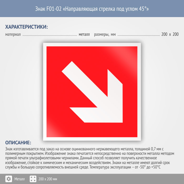 Знак F01-02 «Направляющая стрелка под углом 45°» (металл, 200х200 мм) в Бердске купить