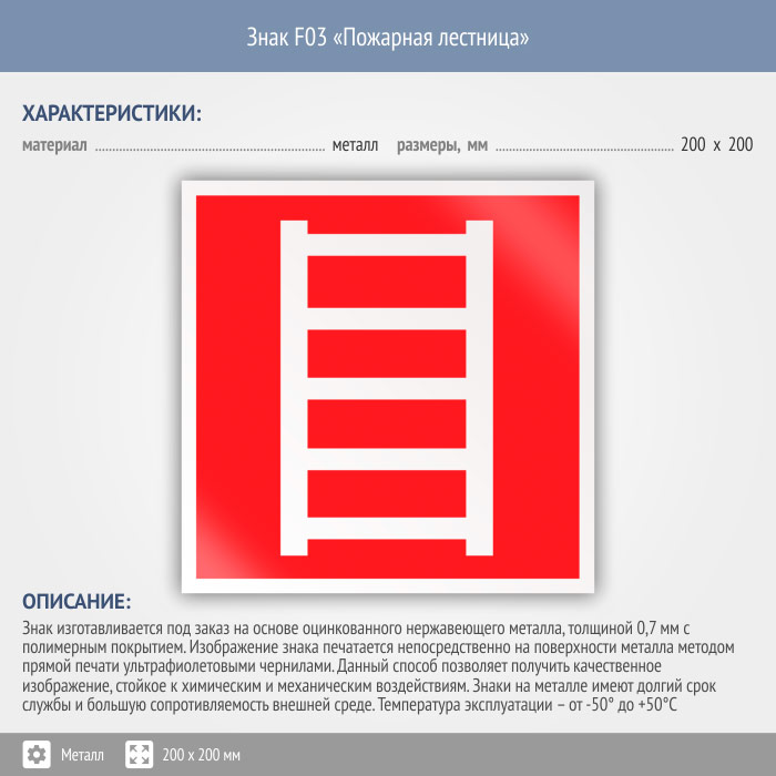 Знак F03 «Пожарная лестница» (металл, 200х200 мм) в Бердске купить