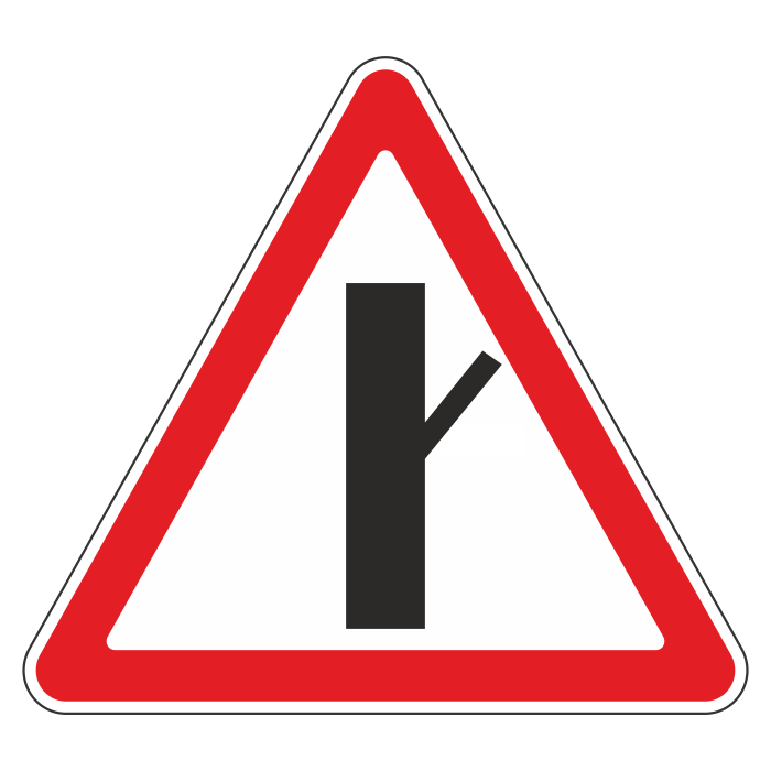 Дорожный знак 2.3.4 «Примыкание второстепенной дороги справа» (металл 0,8 мм, II типоразмер: сторона 900 мм, С/О пленка: тип А коммерческая) в Бердске купить