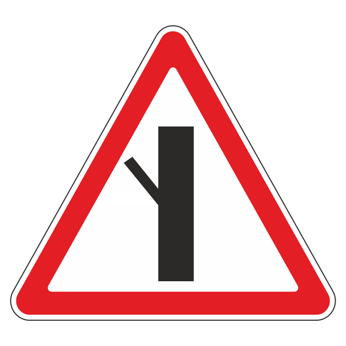 Дорожный знак 2.3.5 «Примыкание второстепенной дороги слева» (металл 0,8 мм, I типоразмер: сторона 700 мм, С/О пленка: тип А инженерная) в Бердске купить