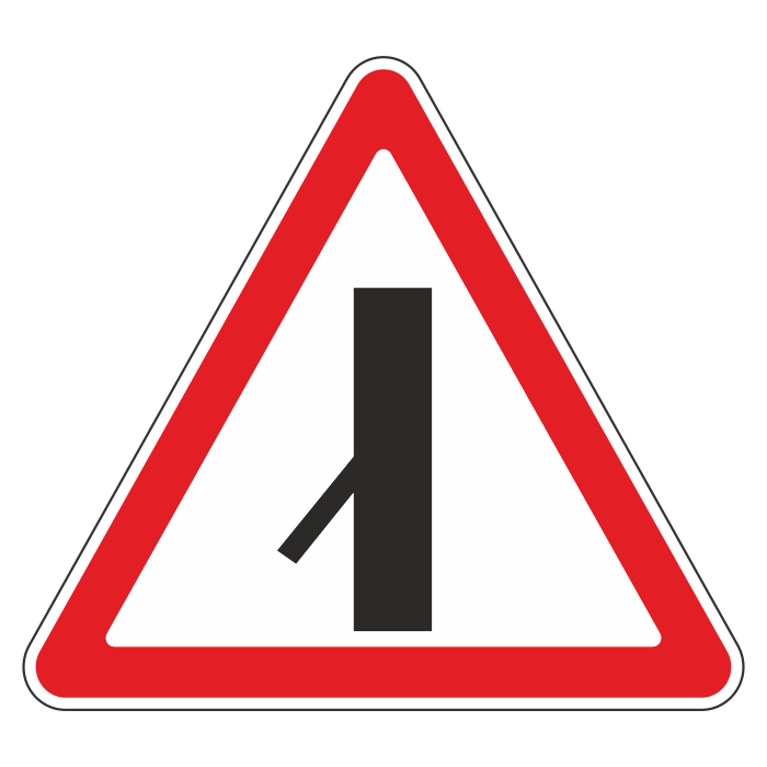 Дорожный знак 2.3.7 «Примыкание второстепенной дороги слева» (металл 0,8 мм, III типоразмер: сторона 1200 мм, С/О пленка: тип А инженерная) в Бердске купить