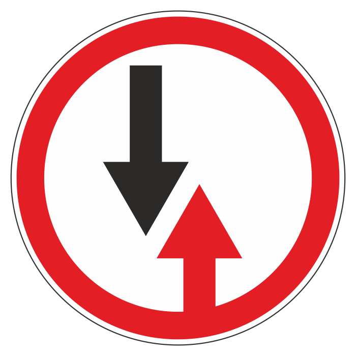Дорожный знак 2.6 «Преимущество встречного движения» (металл 0,8 мм, III типоразмер: диаметр 900 мм, С/О пленка: тип В алмазная) в Бердске купить