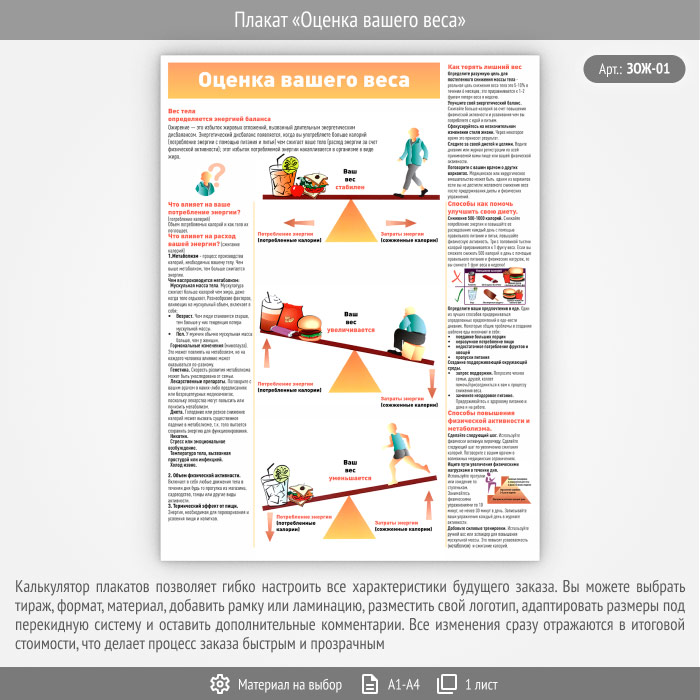 Плакат «Оценка вашего веса» (ЗОЖ-01, 1 лист) в Бердске купить