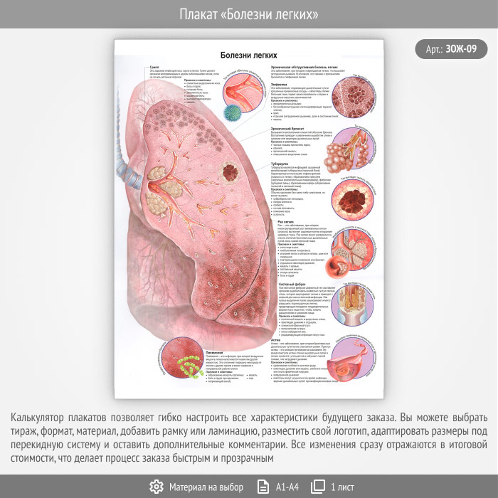 Плакат «Болезни легких» (ЗОЖ-09, 1 лист) в Бердске купить