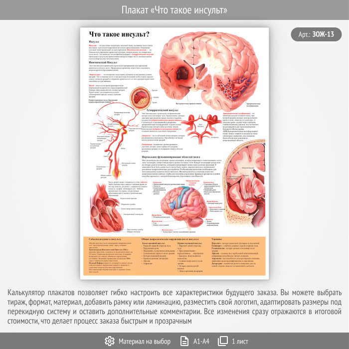 Плакат «Что такое инсульт» (ЗОЖ-13, 1 лист) в Бердске купить