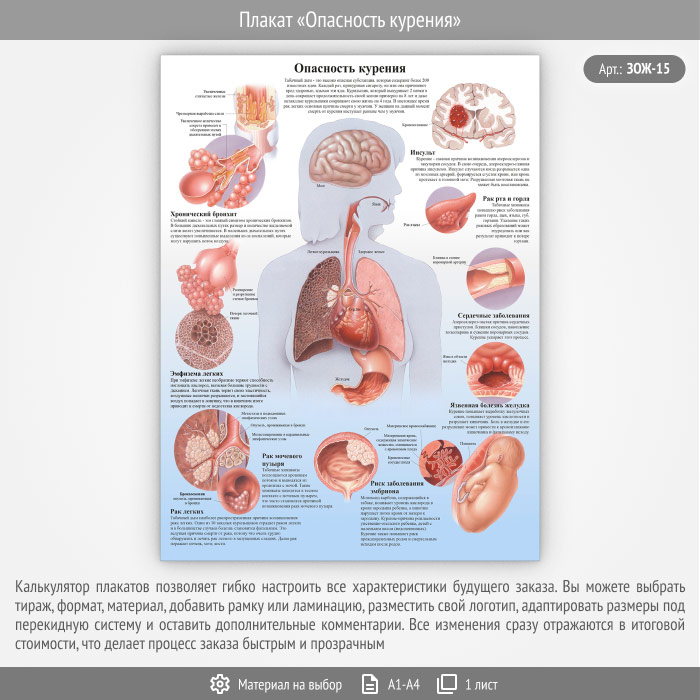 Плакат «Опасность курения» (ЗОЖ-15, 1 лист) в Бердске купить
