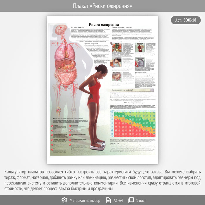 Плакат «Риски ожирения» (ЗОЖ-18, 1 лист) в Бердске купить