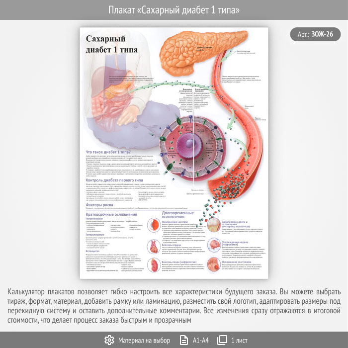 Плакат «Сахарный диабет 1 типа» (ЗОЖ-26, 1 лист) в Бердске купить
