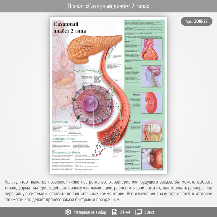 Плакат «Сахарный диабет 2 типа» (ЗОЖ-27, 1 лист) в Бердске купить
